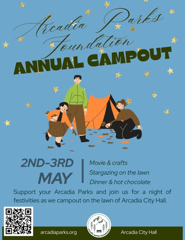 Bring your family, bring your tent, and experience the joy of camping right in the heart of our community at the Arcadia Parks Foundation’s annual Community Campout!